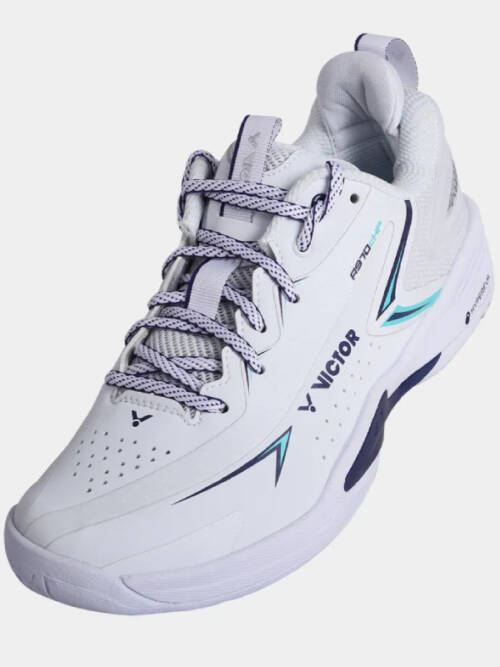 Ervaar ultieme precisie en torsiestijfheid met de VICTOR P9200cHP AB badmintonschoen, de perfecte keuze voor de speler die maximale stabiliteit en explosieve krachtsoverdracht eist bij elke snelle verandering van richting. Dit model is uitgerust met een geavanceerde Carbon Power zoolplaat die torsie voorkomt en de energie-efficiëntie verhoogt, terwijl het strakke en responsieve Wit/Blauw design je een bliksemsnelle uitstraling geeft bij elke krachtige afzet en sprint over de baan.