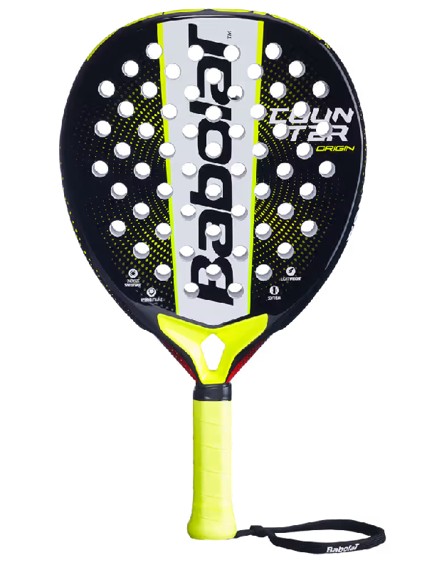 Ontdek de perfecte introductie tot padel met de Babolat Counter Origin in stijlvol zwart en geel, een racket dat speciaal ontworpen is om je eerste stappen op de padelbaan vol vertrouwen te zetten. Dankzij de ronde, oversized sweetspot krijg je meer tolerantie bij elke slag, waardoor je gemakkelijker contact maakt met de bal en fouten vermindert.