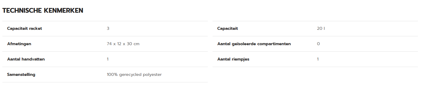 Hoofdcompartiment: Ruimte voor één racket en je sportkleding.