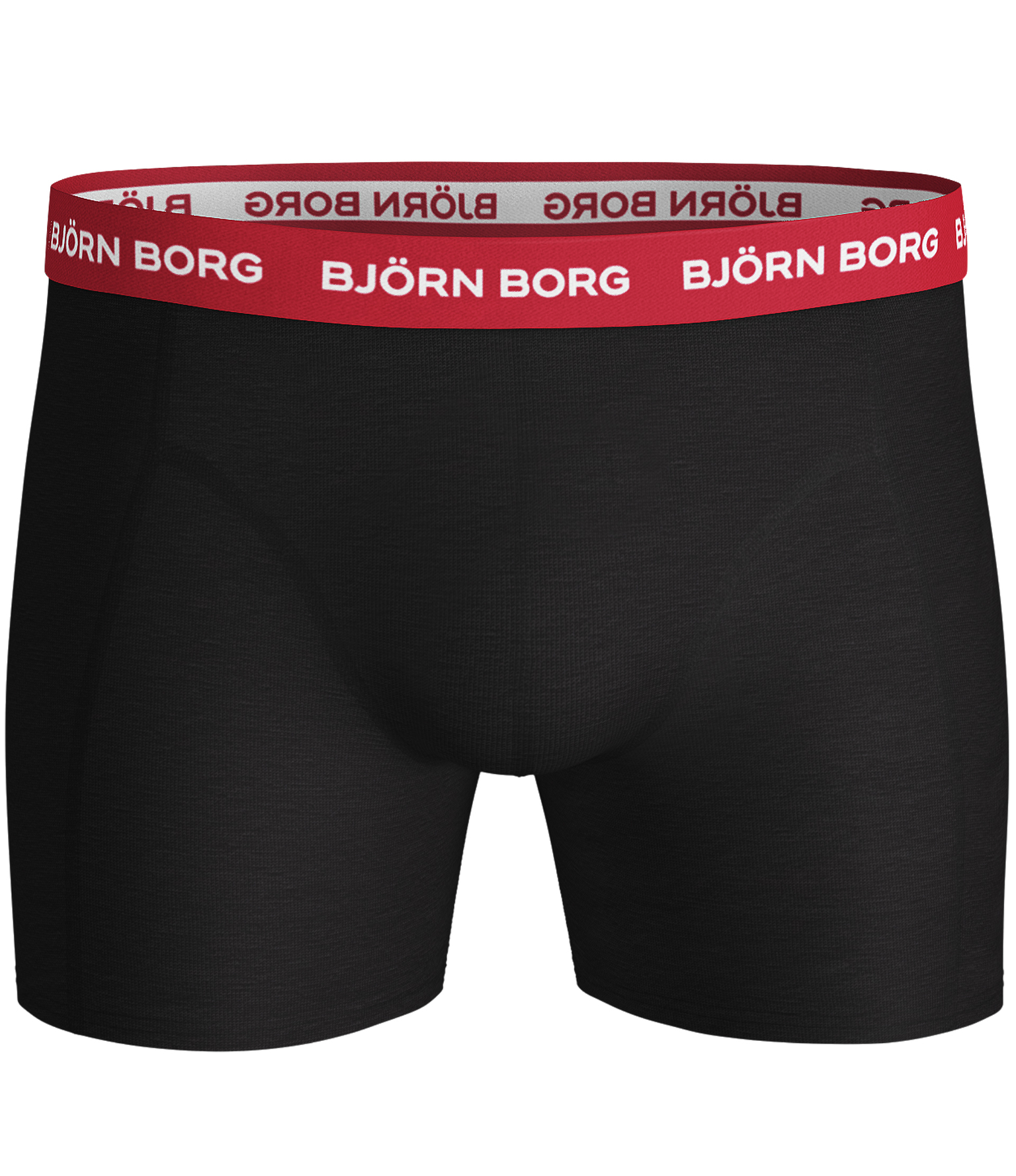 Voeg een speelse maar stijlvolle twist toe aan je basiscollectie met dit Björn Borg Essential Boxer 3-pack in diepzwart, waarbij elke short verrast met een eigen karakter. Hoewel de boxers zelf klassiek zwart zijn, onderscheiden ze zich door de unieke taillebanden in blauw, rood en zwart, waardoor je elke dag een subtiel kleuraccent kiest dat bij je stemming past. Vervaardigd uit de bekende mix van ademend katoen en soepele stretch, bieden deze boxers de vertrouwde Zweedse pasvorm die de hele dag perfect aansluit. Dit pack is de ideale keuze voor de man die houdt van de tijdloze look van zwart, maar waarde hecht aan een sportieve en gevarieerde afwerking.