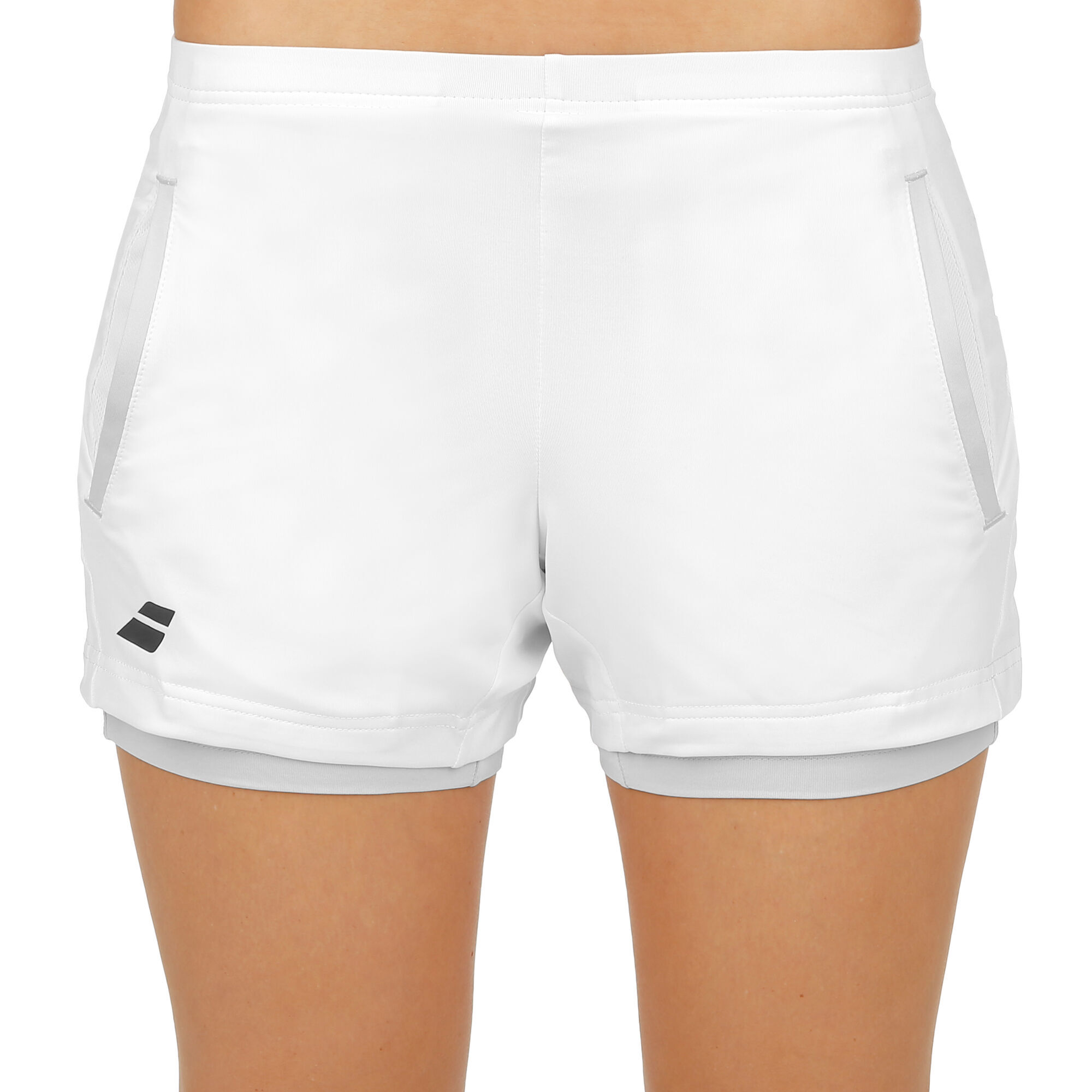 Deze witte korte broek van Babolat voor dames heeft een binnenbroek en zit uiterst comfortabel en is ideaal voor wedstrijden en trainingen.