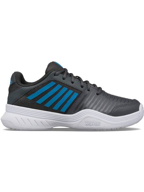 De K-Swiss Court Express Omni Junior is een stijlvolle schoen afkomstig uit de K-Swiss tenniscollectie. De Express is geïnspireerd op de originele klassieke tennisschoen, maar voorzien van de nieuwste materialen en technologieën voor de juiste ondersteuning en extra comfort. Innovatie en stijl worden gecombineerd waardoor deze zowel goed presteert als er goed uitziet.