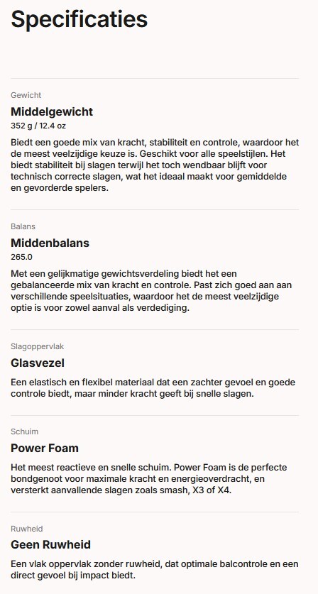 Als je een beginnende speler bent die net begint met het spelen bij een club en houdt van kleur, ben je direct binnen met het gewaagde ontwerp van de BOLT. Dit oversized, druppelvormige racket geeft je spel niet alleen kleur, maar ook zelfs iets extra’s, dankzij de eenvoudige power en het zachte speelgevoel, evenals de tolerantie en vergeeflijkheid. Het raakoppervlak van glasvezel zorgt voor een zachter gevoel en touch en de grotere sweetspot biedt meer tolerantie en vergeeflijkheid.