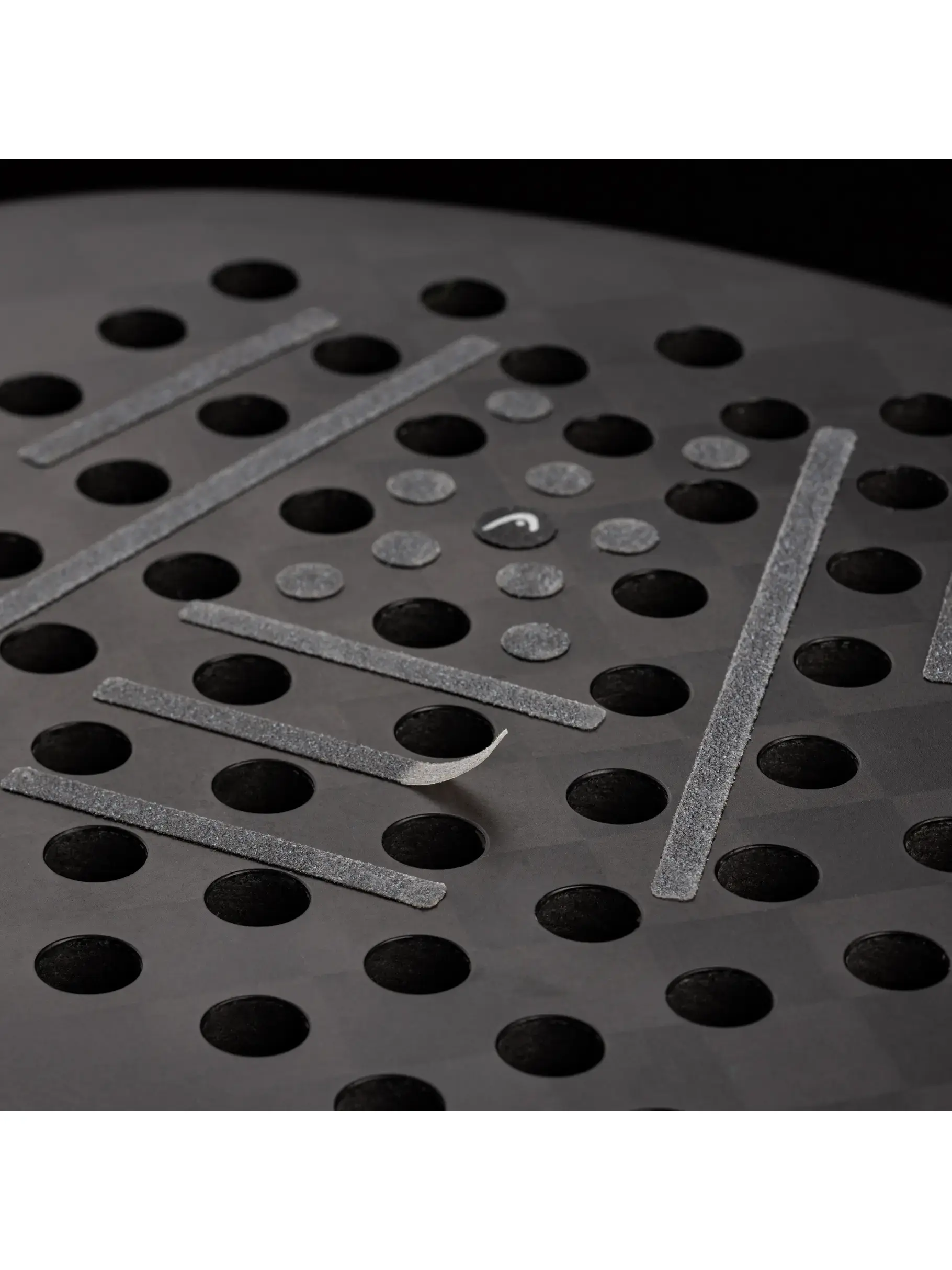 Wil je meer grip op de bal en maximale controle in elke rally? De HEAD Pro Spin Strips, powered by Rezztek®, zijn ontworpen om je slagen naar een hoger niveau te tillen. Dankzij het ruwe oppervlak en de high-performance technologie genereer je extra spin en speel je met meer precisie, zelfs bij lastige hoeken. De strips zijn ultralicht en worden precies in de sweet spot van je padelracket aangebracht. Met slechts 1 gram per racketzijde voel je geen verschil in balans, maar wél in prestaties. De gepatenteerde meerlagenstructuur zorgt voor extra duurzaamheid en minimaal energieverlies bij elk contact met de bal. Ontwikkeld en getest in samenwerking met professionele padelspelers en coaches, zodat je kunt vertrouwen op prestaties op topniveau. De krachtige lijmlaag hecht perfect, maar laat zich ook schoon verwijderen, waardoor de strips eenvoudig te vervangen zijn wanneer je weer extra grip nodig hebt. De verpakking bevat twee sets strips in verschillende vormen en maten (lange en korte strips en dots), zodat je ze volledig kunt aanpassen aan jouw racket, boorpatroon en speelstijl.