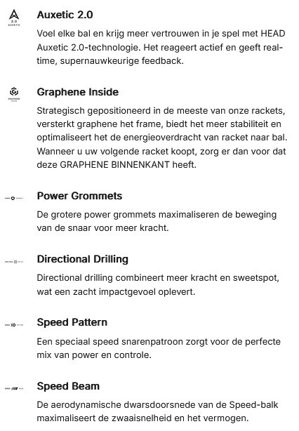 Ontdek de perfecte balans tussen explosieve snelheid en gecontroleerde precisie met de HEAD Speed MP L 2026, uitgevoerd in een tijdloos en strak zwart-wit design. Deze lichtere variant van de standaard MP is speciaal ontworpen voor de ambitieuze speler die zoekt naar superieure wendbaarheid zonder in te leveren op het iconische Speed-gevoel. Dankzij de innovatieve Auxetic 2.0-technologie geniet je bij elke slag van een sensationele feedback en een stabieler balcontact, waardoor je met het grootste vertrouwen het tempo van de wedstrijd kunt dicteren. Of je nu snelle uitvallen aan het net forceert of krachtige returns slaat vanaf de baseline, dit racket biedt de ideale combinatie van een lichtgewicht frame en ongeëvenaarde souplesse voor de moderne, dynamische tennisser.
