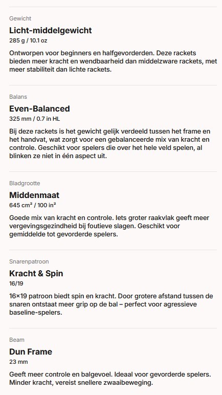 · Voor gemiddelde spelers en gevorderde junioren die op zoek zijn naar een beweeglijk racket met de perfecte mix van power en controle