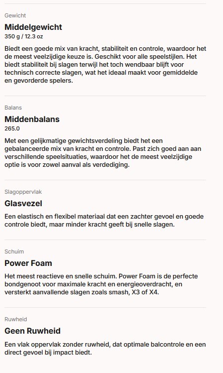 | Gewicht (onbespannen) | abt. 350 g |