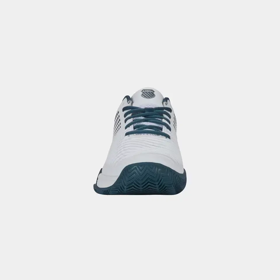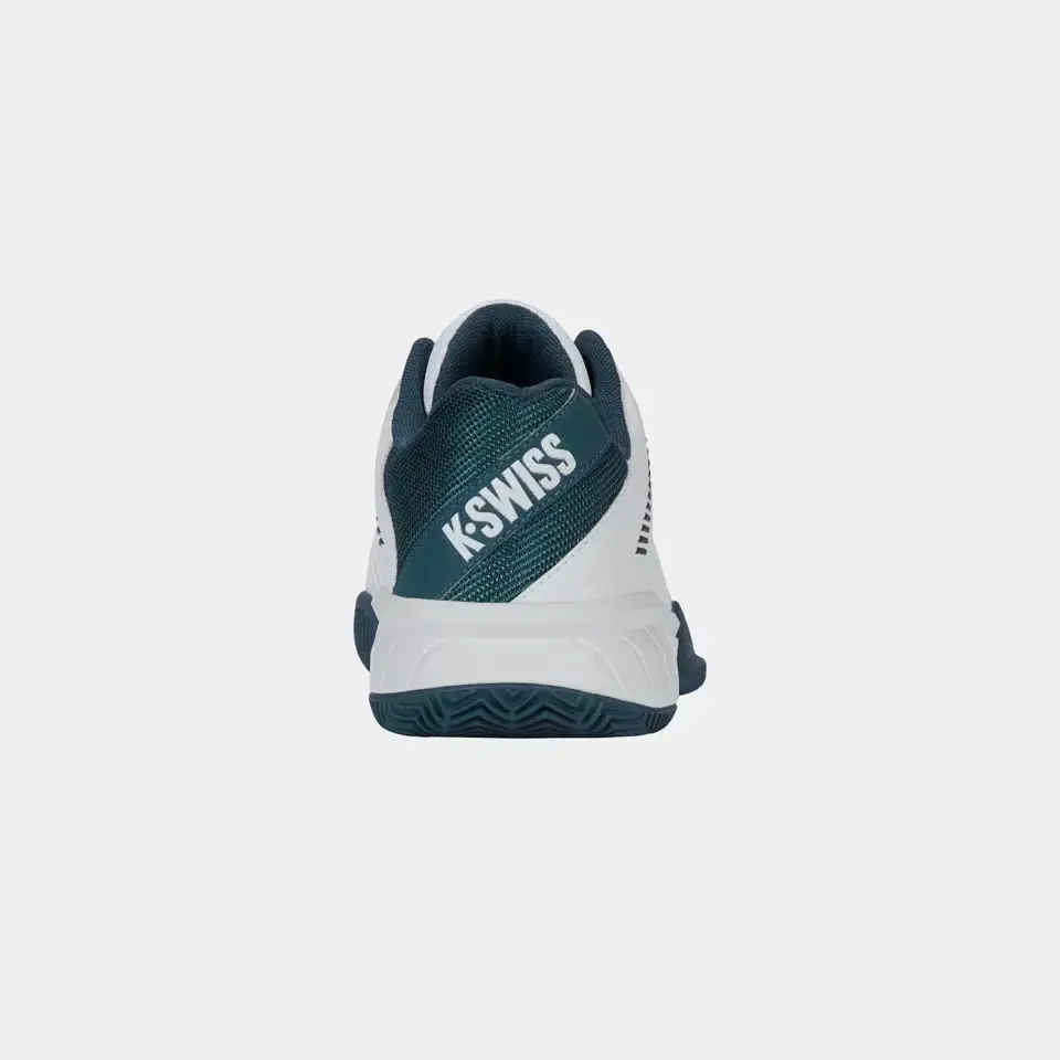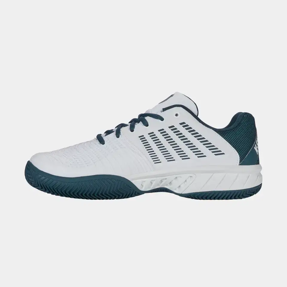 De K-Swiss Express Light 3 Clay is een veelzijdige en comfortabele tennisschoen, ontworpen voor spelers die op gravel en smashcourt topprestaties willen leveren. Het duurzame herringbone-profiel in de zool zorgt voor uitstekende grip en stabiliteit, terwijl het lichte en ademende synthetische bovenwerk voor optimaal comfort en ventilatie zorgt. Dankzij de CMEVA-tussenzool biedt de schoen uitstekende demping en schokabsorptie, wat bijdraagt aan langdurig speelplezier. Met een verstevigde slijtvaste buitenzool is de Express Light 3 Clay een ideale keuze voor zowel recreatieve als competitieve spelers die op zoek zijn naar een betrouwbare en duurzame tennisschoen.