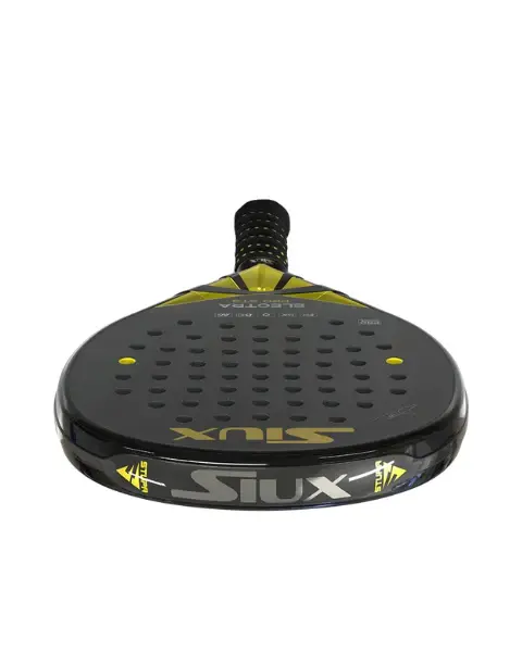 De Siux Electra Stupa Pro ST3 – Zwart/Geel is een professioneel padelracket, ontworpen in samenwerking met top speler Franco Stupaczuk. Met een hybride traanvorm en middelhoge balans biedt het een uitstekende mix van kracht en controle, ideaal voor aanvallende spelers die ook precisie in hun slagen willen behouden. Het carbon 15K frame en de EVA kern zorgen voor maximale duurzaamheid, comfort en verminderde trillingen. Perfect voor gevorderde spelers die hun prestaties op de baan willen optimaliseren.