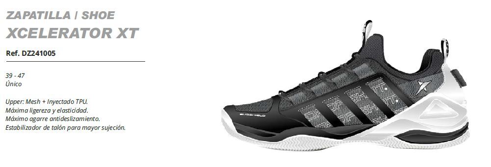 Ervaar baanbrekende wendbaarheid en explosieve kracht met de Dropshot Xcelerator XT padelschoen, de perfecte synergie van stabiliteit, grip en lichtgewicht comfort uitgevoerd in een scherp, iconisch zwart-wit design dat elke look compleet maakt; deze schoen is speciaal ontworpen voor de intensieve, snelle bewegingen van padel, en biedt met zijn ademende mesh, verstevigde neus en strategische visgraatprofiel de ultieme responsiviteit en de onwankelbare steun die nodig is om je tegenstander in elke hoek van de baan te domineren.